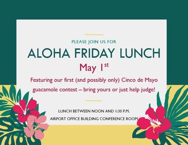 Join us in the Airport Office Building conference room between noon and when we're finished. We'd love to see you!
